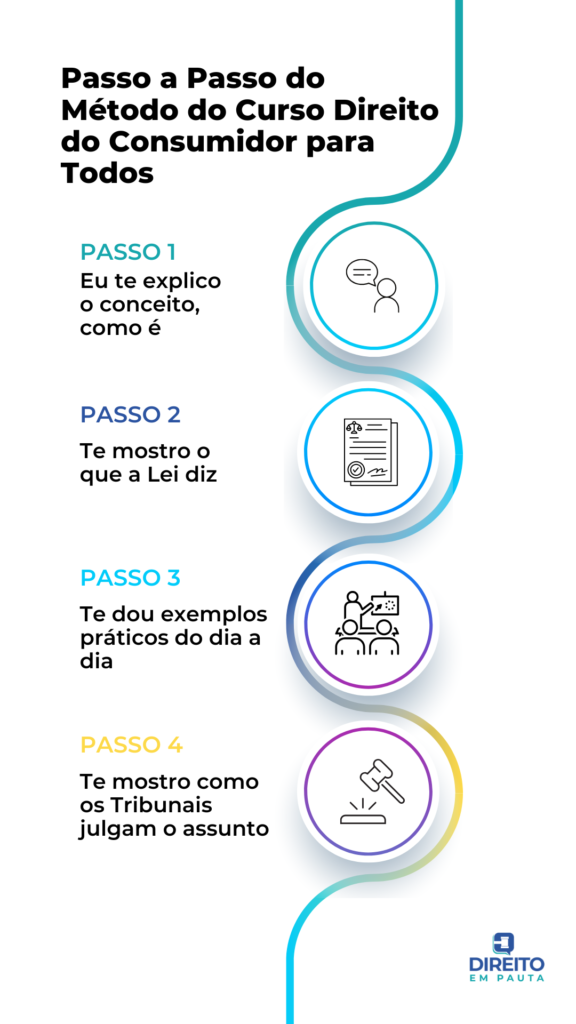 Após várias tentativas e aprendizados, desenvolvi um método único e simples para ajudar pessoas. Com o autêntico método de ensino Direito em Pauta você vai aprender os direitos do consumidor de forma simples, objetiva, prática, contando com inúmeras decisões judiciais e mapas mentais para facilitar e te manter atualizado.